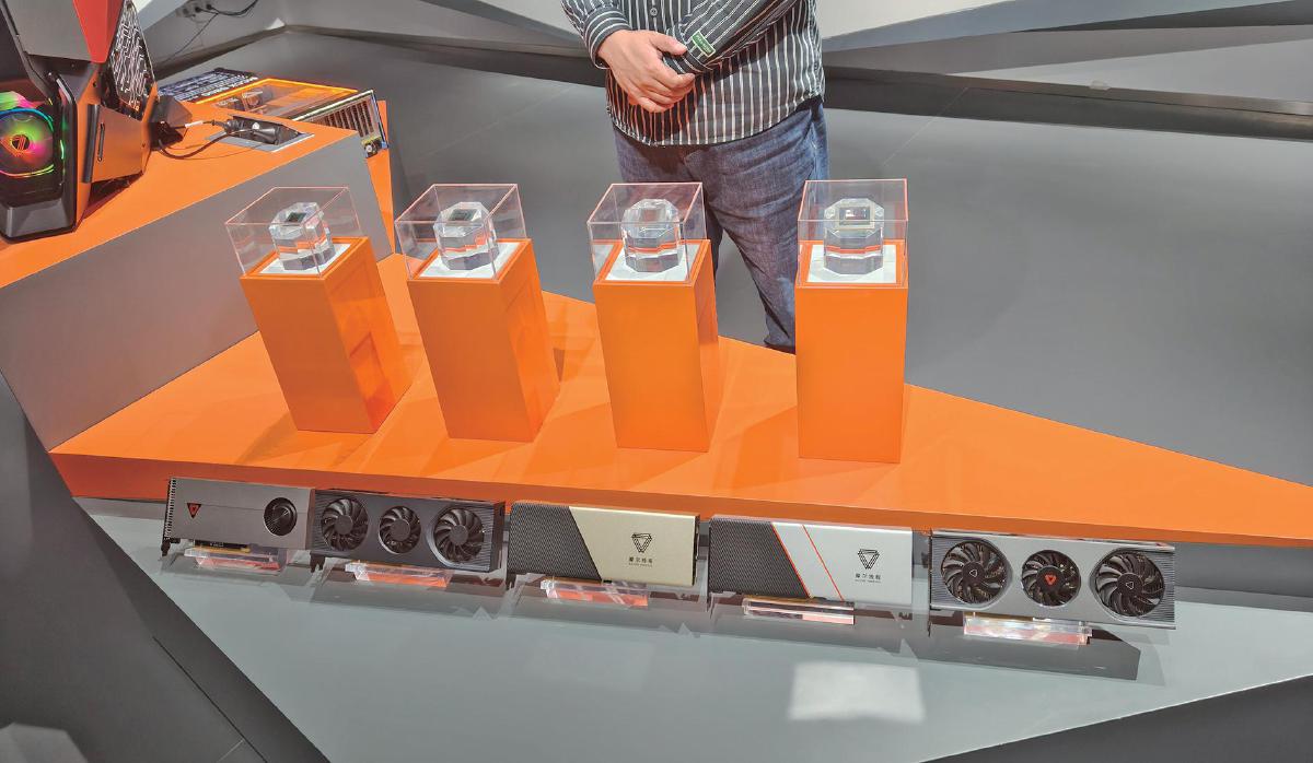 走进摩尔线程的展厅,宛如一个科技小世界,陈列着公司自主研发的全功能gpu芯片。