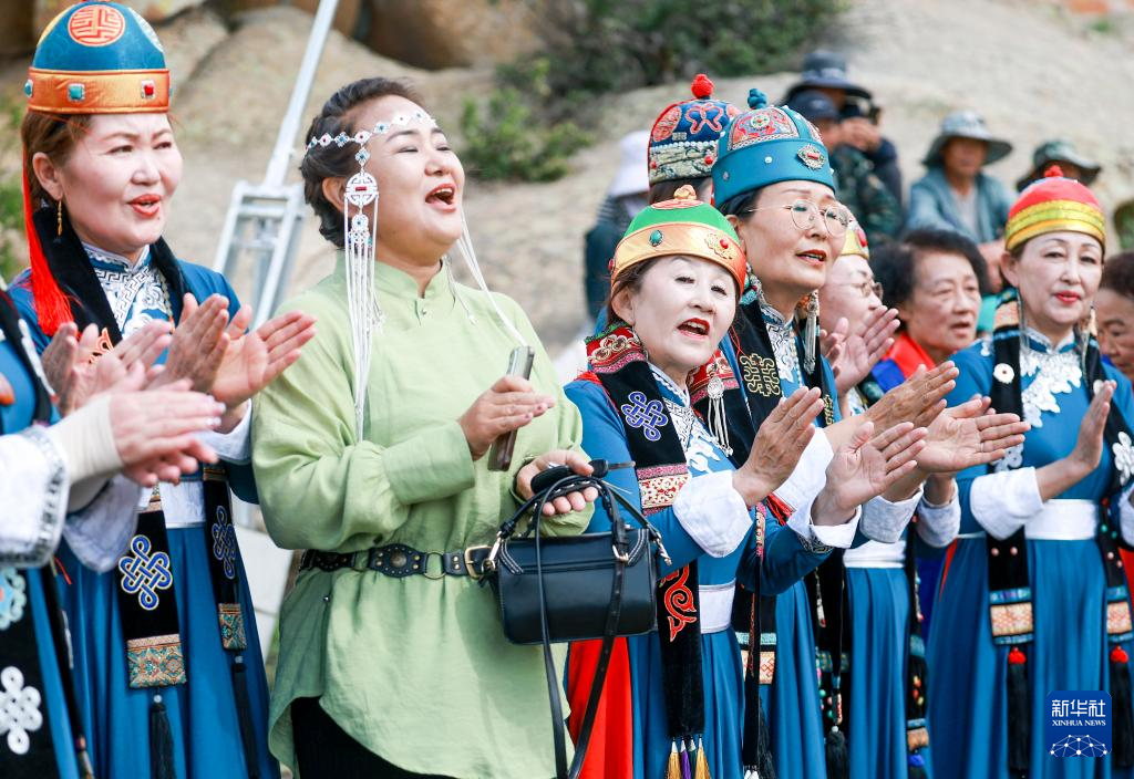 5月24日,在新疆阿勒泰市汗德尕特蒙古族乡,演员在活动现场唱歌。