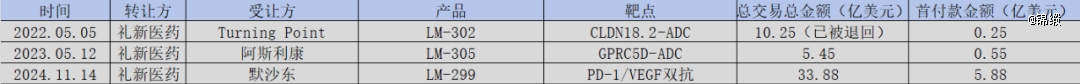 关于这一点,近期中生制药“抄底”礼新医药的案例就十分具有说明力。礼新医药此前共完成3笔大额bd交易,虽然2024年10月,bms收购turning point后退回了管线,但礼新医药履行中的bd总交易额依然接近40亿美金。然而如此高的bd总交易额,但中生制药却仅用5亿美元就全面收购了对方,这足以表明行业中对于潜在交易金额的态度。
