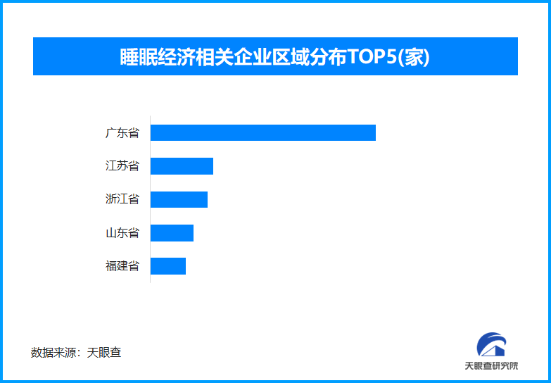 大量企业敏锐捕捉到这一商机,天眼查专业版数据显示,截至目前我国现存在业、存续状态的睡眠经济相关企业超9500万家。其中,2024年新增注册相关企业约240余家。从区域分布来看,广东省以超3000家相关企业数量位居首位,占全国总数比达32.1%,东部经济发达地区成为“睡眠经济”企业的集中地。