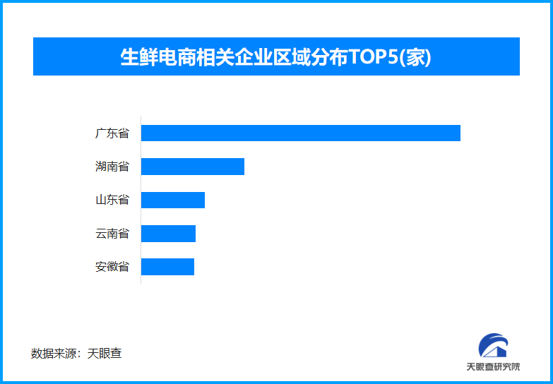 天眼查专业版数据显示,截至目前我国现存在业、存续状态的生鲜电商相关企业超6.4万家。从区域分布来看,广东省生鲜电商相关企业数量位居首位,以超1.7万余家的相关企业数量,占全国总数的26.94%。排在其后的是湖南省和山东省。